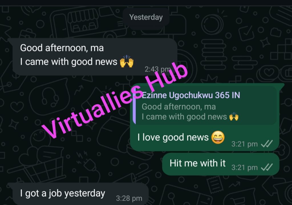 Few Months ago I registered for a 40 days virtual assistant training course with virtuallies Hub, and I had the privilege of being coached by Coach Horsfall Fortuna. During the training, She demonstrated professionalism, patience, and a genuine commitment to helping each participant succeed. I highly recommend Coach Fortuna to anyone looking for an exceptional and dedicated coach. Thank you so much coach for your positive impact on my journey.